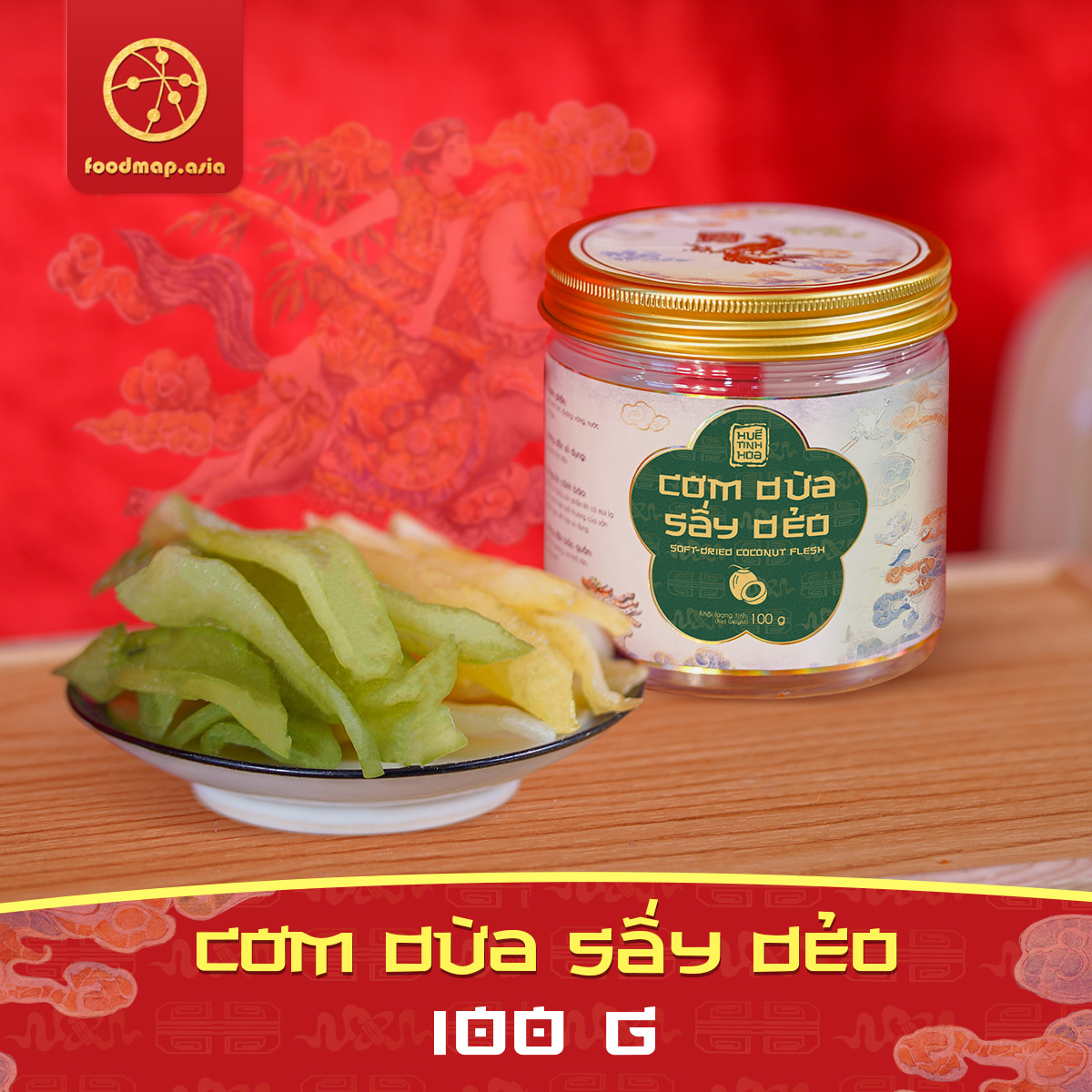 Sản phẩm được chế biến từ dừa tươi nguyên chất, kết hợp kỹ thuật sấy dẻo hiện đại giúp giữ trọn hương vị truyền thống và độ mềm dẻo hấp dẫn.