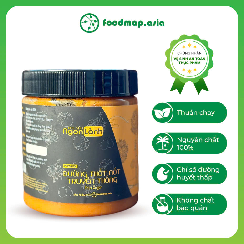 Đường thốt nốt truyền thống của Đặc sản Ngon lành được sản xuất tại Tịnh Biên, An Giang. Theo quy trình ngàn xưa, được nấu thành dạng chảy, nguyên chất 100% sau đó đóng hũ có nắp tiện lợi (loại hũ chuyên dùng cho bảo quản thực phẩm).