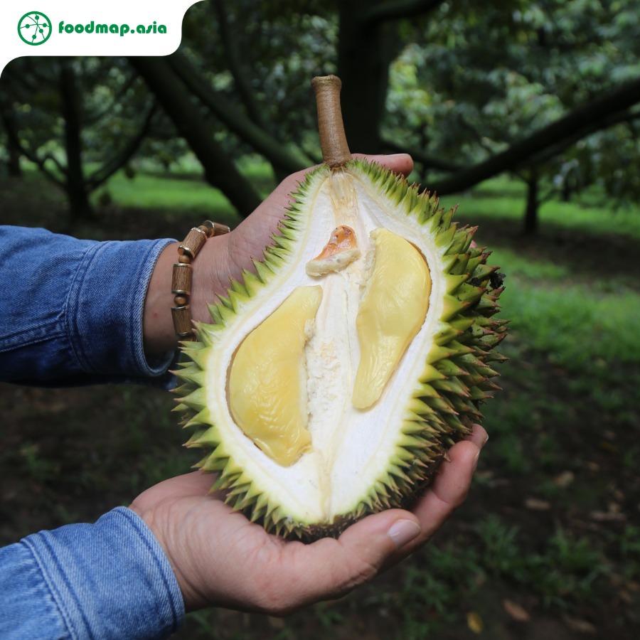 LƯU Ý : Nếu đáy trái đưa dao tách còn cứng chưa tách được thì sầu chưa chín, để lại chờ thêm không nên cố khui dẫn đến sượng non, FoodMap sẽ không bảo hành trường hợp này