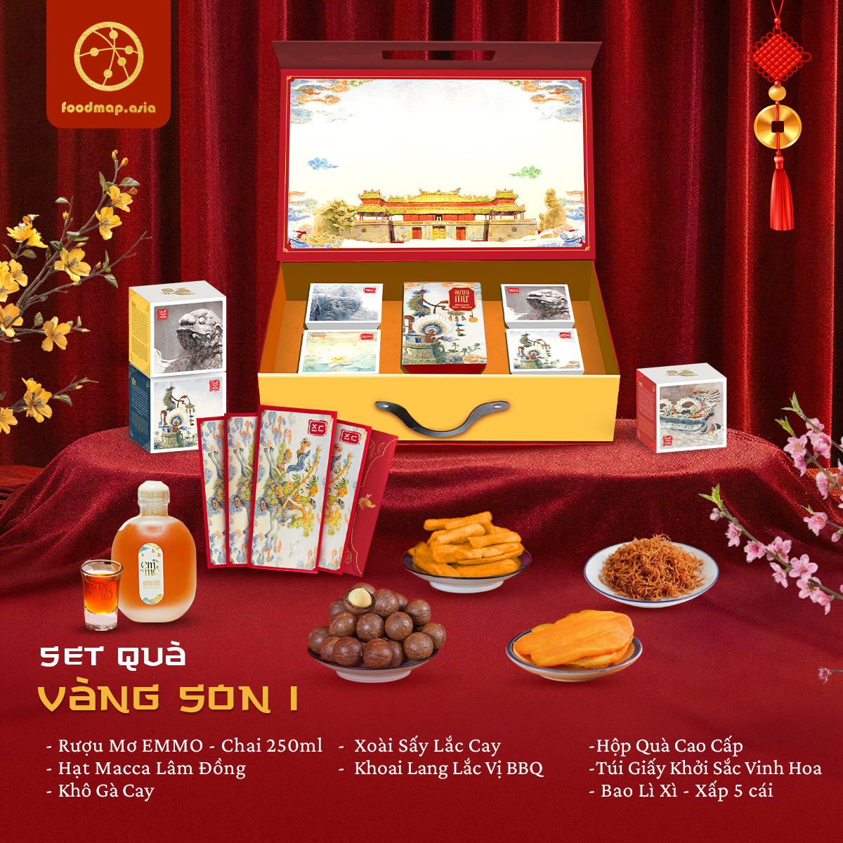 SET QUÀ VÀNG SON 1 – HỘP QUÀ TẾT CAO CẤP, KHỞI SẮC VINH HOA