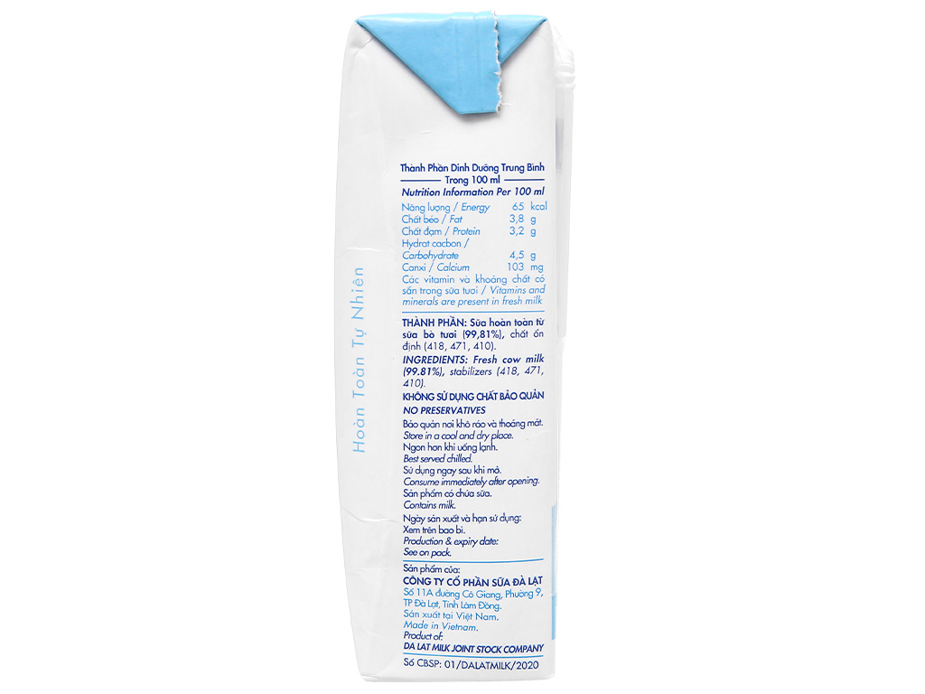 - Tên sản phẩm: Sữa Tươi Tiệt Trùng Vị Tự Nhiên Dalatmilk