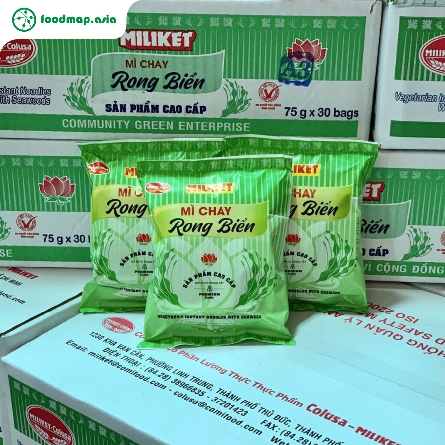 Mì chay rong biển gồm có vắt mì và gói gia vị. Vắt mì được làm từ bột mì, tinh bột khoai mì, muối I-ốt, đường. Gói gia vị bao gồm muối I-ốt, đường, dầu cọ tinh luyện, hành, tiêu, tỏi, ớt và tinh dầu ớt,... Mỗi gói mì Miliket nặng 70g và cung cấp khoảng 320 calo cho cơ thể.