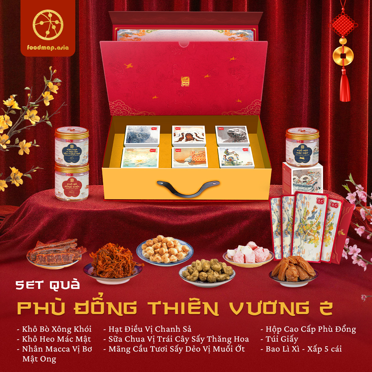 SET QUÀ PHÙ ĐỔNG THIÊN VƯƠNG 2 là bộ quà Tết cao cấp mang cảm hứng từ hình tượng Phù Đổng Thiên Vương – biểu trưng cho sức mạnh, bản lĩnh và khởi đầu bứt phá. Set quà quy tụ các đặc sản khô – hạt dinh dưỡng – sản phẩm sấy hiện đại, phù hợp làm quà biếu doanh nghiệp, đối tác chiến lược và khách hàng quan trọng trong dịp Tết Nguyên Đán.